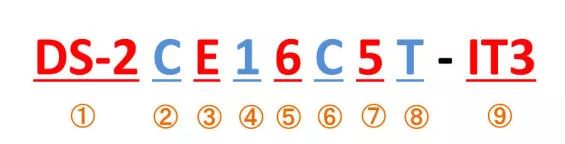 網(wǎng)絡(luò)攝像機(jī) ① DS-2:海康威視前端產(chǎn)品 ② CD:網(wǎng)絡(luò)攝像機(jī) ③ 1:1系列,經(jīng)銷產(chǎn)品 3:3系列,經(jīng)銷產(chǎn)品 ④ 1:LED紅外網(wǎng)絡(luò)半球 2/A/T:點(diǎn)陣紅外網(wǎng)絡(luò)筒型 3:點(diǎn)陣紅外網(wǎng)絡(luò)海螺 4:卡片型網(wǎng)絡(luò)攝像機(jī) 9:魚眼攝像機(jī) Q:云臺(tái)型網(wǎng)絡(luò)攝像機(jī) ⑤ 0:100萬 1:100萬/130萬 2:200萬 3:300萬 4:400萬 5: 500萬 ⑥ 0/2:H.264編碼 5:H.265編碼 1:H.264編碼的星光產(chǎn)品 6:H.265編碼的星光產(chǎn)品 7:全彩星光 ⑦ F:支持Micro SD卡 D:不支持PoE WD:支持真寬動(dòng)態(tài) ⑧ I3/5/8:EXIR 紅外最遠(yuǎn)支持30/50/80m S:支持音頻、報(bào)警 W:支持Wi-Fi /R:支持輕存儲(chǔ)技術(shù) W/R:支持Wlan熱點(diǎn)功能 /ZJ:自帶支架 L:自帶白光補(bǔ)光燈 Z:支持電動(dòng)變焦 網(wǎng)絡(luò)球機(jī) ① DS-2:??低暻岸水a(chǎn)品 ② D:網(wǎng)絡(luò)球機(jī) ③ C:經(jīng)濟(jì)型球機(jī) ④ 7:7寸球機(jī) 6:6寸球機(jī) 5:5寸球機(jī) 4:4寸球機(jī) 2:2.5寸球機(jī) ⑤ 1:130萬 2:200萬 3:300萬 4:400萬 ⑥ 20:20倍變倍 06:6倍變倍 04:4倍變倍 03:3倍變倍 02:2倍變倍 ⑦ I:支持紅外 B:支持白光 ⑧ W:支持H.265編碼 Y:支持H.264編碼 ⑨ A:AC24V,室外,IP66 D:DC12V,室外,IP66 D3:DC12V,室內(nèi) DE3/W:DC12V/PoE,室內(nèi),Wi-Fi 同軸高清攝像機(jī) ① DS-2:??低暻岸水a(chǎn)品 ② C:彩色攝像機(jī) ③ E:經(jīng)濟(jì)型攝像機(jī) ④ 1:槍型/筒型攝像機(jī) 5:半球攝像機(jī) ⑤ 5:第一代DIS攝像機(jī) 6:第二代DIS攝像機(jī) ⑥ C:720p D:1080p F:300w ⑦ 0/1/3:普通攝像機(jī) 5:OSD低照度攝像機(jī) 8:車牌照明攝像機(jī) 9:寬動(dòng)態(tài)攝像機(jī) ⑧ T:HDTVI ⑨ IT3:點(diǎn)陣紅外30-40米 IT5:點(diǎn)陣紅外50-80米 IW3:白光照射30-40米 IW5:白光照射50-80米 Z:電動(dòng)變焦 同軸高清球機(jī) ① DS-2:??低暻岸水a(chǎn)品 ② A:模擬球機(jī)/模擬高清球機(jī) ③ C:經(jīng)銷設(shè)備 ④ 4:4寸球機(jī) 5:5寸球機(jī) 6:6寸球機(jī) 7:7寸球機(jī) ⑤ 1:720p 2:1080p ⑥ 23:23倍光學(xué)變倍 ⑦ T:HDTVI ⑧ I:支持紅外 B:支持白光 ⑨ D:DC12V,室外,IP66 A:AC24V,室外,IP66