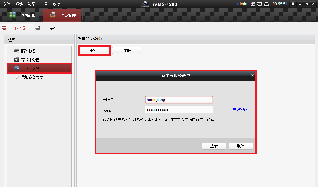 若已有相關(guān)螢石云賬戶,請(qǐng)使用鼠標(biāo)左鍵單擊“登陸”,輸入已注冊(cè)的螢石云服務(wù)賬戶、密碼,即可登陸該賬戶,查看該螢石云賬戶下相關(guān)視頻。